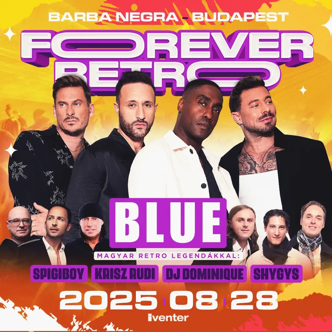 A budapesti Barba Negra színpadán augusztus 28-án egyszerre robban a hazai és a nemzetközi retro világ színe-java. A FOREVER RETRO: BLUE – Retro legendák éjszakája elhozza a legnagyobb hazai kedvenceket és a világszerte ismert brit fiúbandát, a BLUE-t.